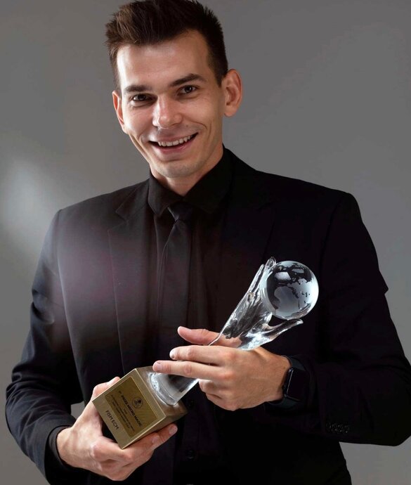 Камерный зал: всего 25 мест. Вся магия происходит на расстоянии вытянутой руки. На сцене — Владимир Григорьев, действующий чемпион Европы по фокусам FISM 2024 (Close up Magic).