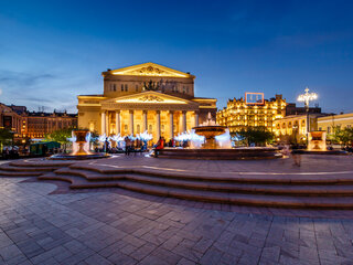 • восхититесь великолепием Театральной площади, усыпанной ночными огнями, полюбуетесь зданиями Большого и Малого театров;