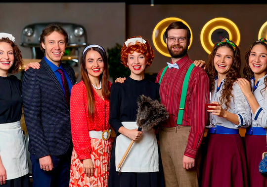 Живой юмор, яркие характеры, танцы и атмосфера ретро-вечеринки превращают ресторан в сцену 360°, где каждый стол — часть истории, где смех громче правил, а искренность и любовь всегда побеждают хаос.
