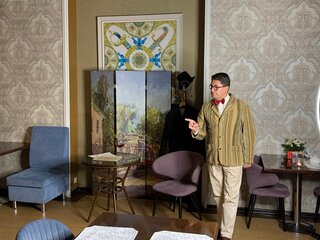 Капучино или любимый напиток в бокале, уютное арт-кафе и настоящий театр с остроумными историями от короля русского юмора — Аркадия Аверченко (именно так называли его современники).