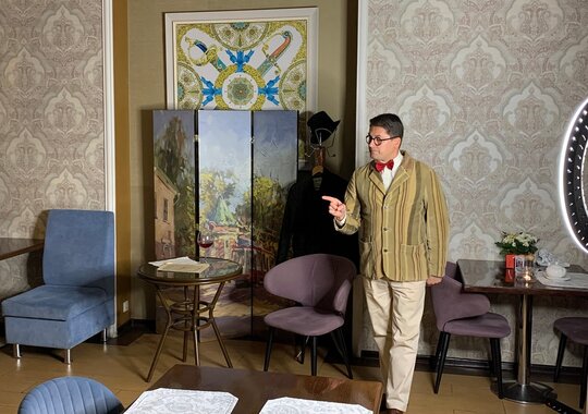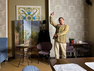 Моноспектакль из 3 историй по 15-17 минут, в антракте можно заказать по меню еду и напитки.