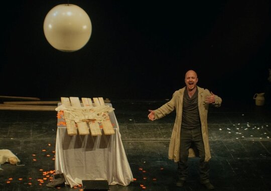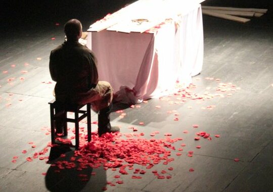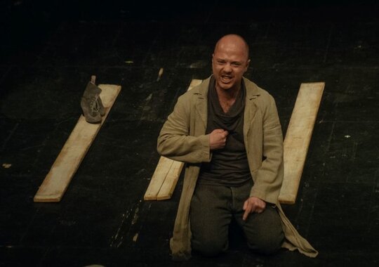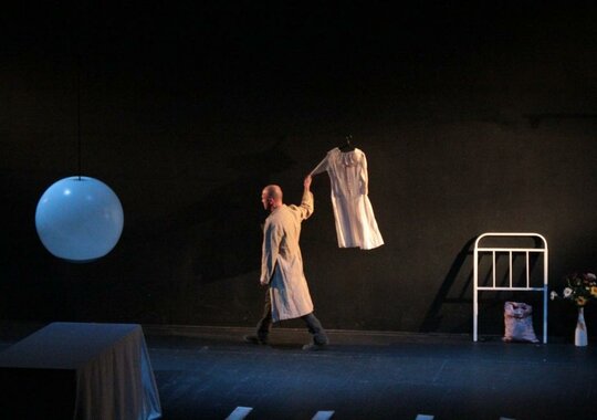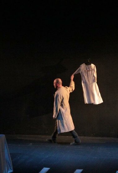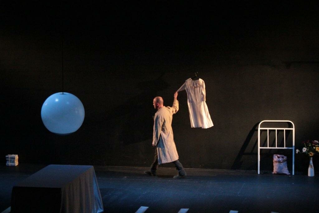 Спектакль «Кроткая» — третья совместная постановка режиссера Павла Сафонова и актера театра и кино Евгения Стычкина. Моноспектакль создан специально к VIII Московскому международному фестивалю моноспектаклей «Solo».