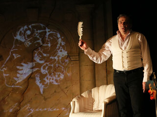Грандиозный проект Марка Розовского на Старой сцене театра. «Лента поэзии» – поэтический моноспектакль, в котором гениальные строки А. С. Пушкина предстанут в исключительно игровой форме. Миры поэта до вас донесёт народный артист России, лауреат Государственной премии Валерий Шейман. В программе вечера Пушкина: «Пророк»; «Деревня» (фрагмент); «Элегия», 19 октября 1825 года; «Евгений Онегин» (фрагмент); «Сцена из Фауста»; «Граф Нулин»; «Памятник». Далее на «Ленте поэзии» возникнут имена Цветаевой, Есенина, Маяковского, Блока… А также Самойлова, Левитанского, Саши Чёрного, Агнивцева, Бродского, Ахматовой… Поэты известные и малоизвестные, забытые и полузабытые… Классики и наши современники… Дорогие зрители, вас ждут сюрпризы и открытия, новые трактовки и свежие переживания в необозримом пространстве русской культуры. Проект «Лента поэзии» поистине бесконечен. Потому что бесконечна русская поэзия и неисчерпаемы таланты наших артистов.