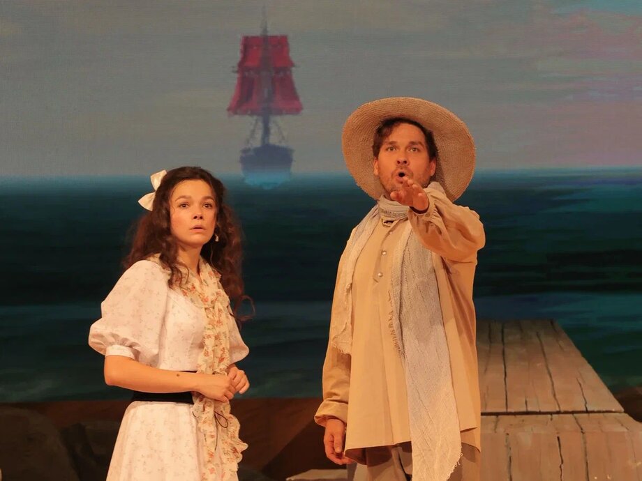 Вместе со зрителем актёры и симфонический оркестр театра оказываются на морском побережье, где завязывается одна из самых добрых историй о любви. Декорации, визуальные эффекты, танцевальные номера гармонично сосуществуют с миром главной героини повести — Ассоль. Динамичные резкие сцены, передающие суровый характер моря, на контрасте прорисовывают непоколебимость чувств и веры героини, её преданность мечте.