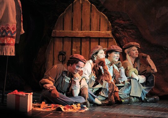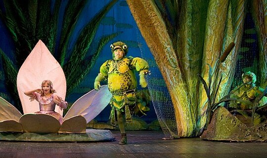 Бессмертная сказка Андерсена получила в Детском музыкальном театре имени Наталии Сац новую жизнь в современной музыке, пении и танце. Она переносит зрителей в волшебный мир, где живет сказочник Оле Лукойе. Как только он взмахнет своей волшебной палочкой, из чудесного цветка появится крохотная девочка — Дюймовочка. Сколько приключений ей придется пережить! Ее похитят противные Жабы, прогонят надменные Майские Жуки, затем она окажется в услужении у Мыши и едва избежит замужества со скупым Кротом. Но наступит весна, и Ласточка, спасенная Дюймовочкой в зимнюю стужу, на своих крыльях перенесет ее в волшебную страну, где она встретит своего Принца.