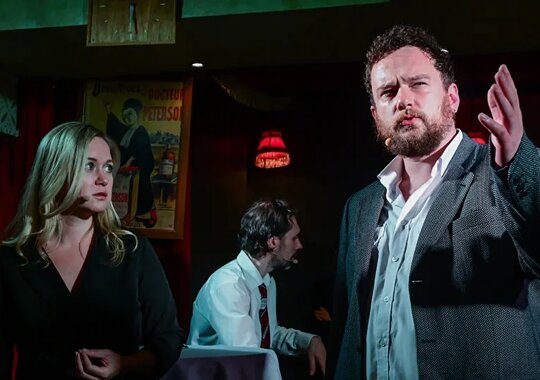 В спектакле заняты трое актеров, каждый проживает несколько ролей. Горькая ирония Довлатова превращается в сверкающее остроумие и каждый персонаж выходит живым, исполненным комизма и трогательной нежности, без которой нет большого искусства.