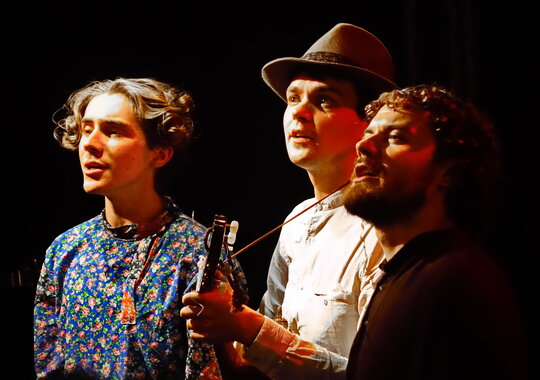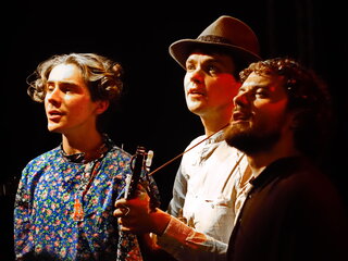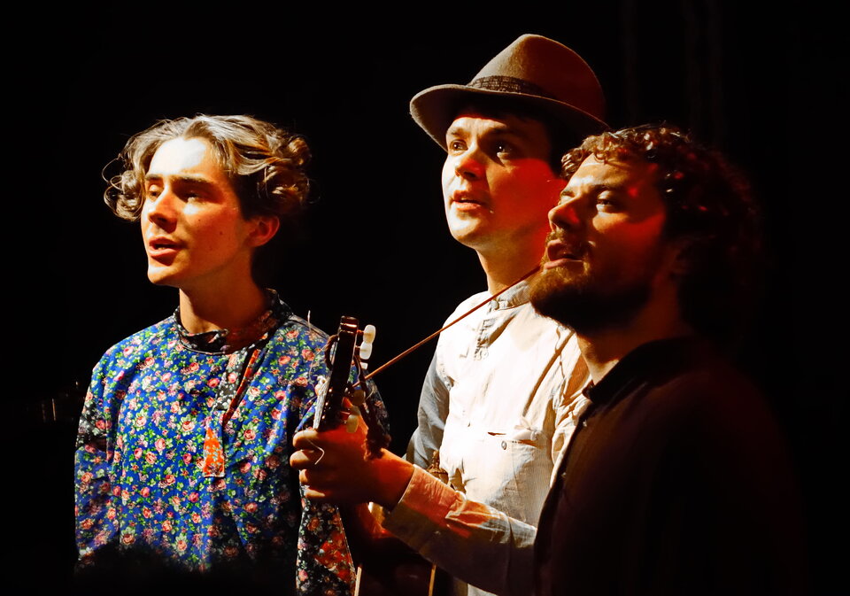 Стихи и музыка — в спектакле актеры являются еще и музыкантами — не просто иллюстрируют рассказы героя, но являются продолжением его повествования, создают ощущение живого есенинского мира.