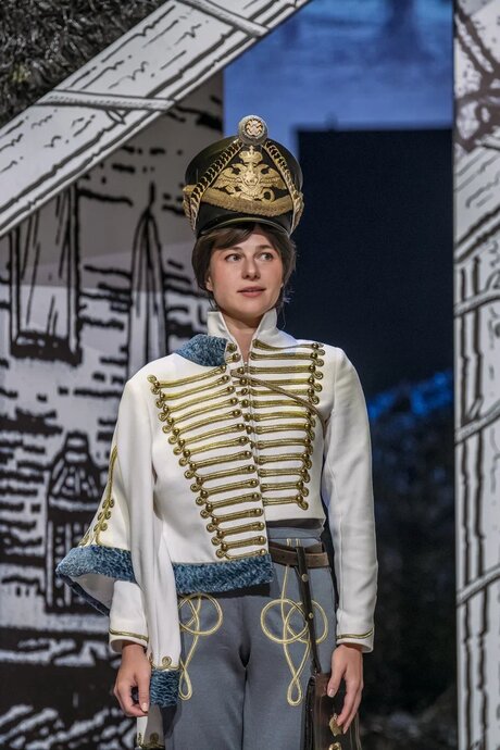 При этом режиссёр не отходит от уникального жанра героической комедии. «Героизма в этой истории предостаточно, — говорит Татьяна Константинова, — 17-летняя девчонка сбегает от кукол и бантиков на фронт. Но рассказана эта история с огромным юмором — весело и легко. Вот почему мне пришла в голову идея сделать из известного исторического казуса о девочке, выдававшей себя за гусара, спектакль — праздник: пышное, воодушевляющее действо. Время сейчас не самое лёгкое, и поэтому особенно хочется подарить людям глоток радости».