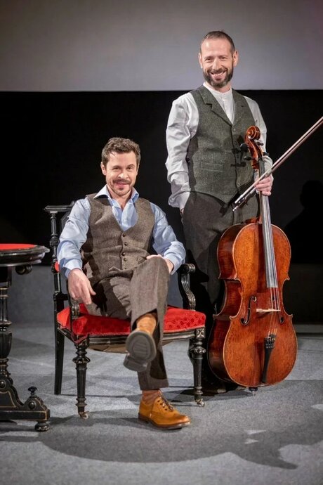 Программа легкая и жизнерадостная, приправленная пикантными историями и саунд-дизайном. Борис и Павел ловко соединяют блистательное актерское ремесло с виртуозным исполнением музыкальных фрагментов от Баха до Чижика-Пыжика, они и играют, и танцуют, и поют, и читают.