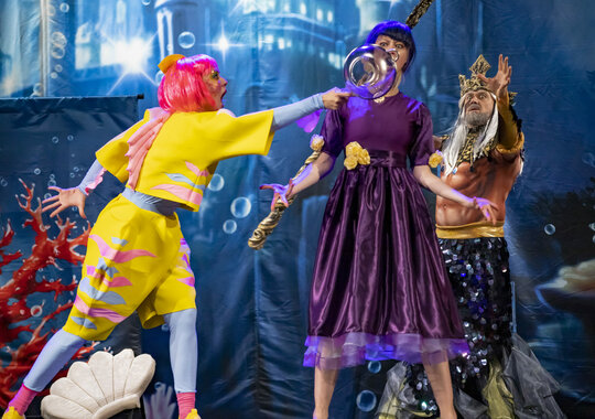 Сказка о юной Русалочке, которая готова отказаться от своей жизни в море ради того, чтобы получить человеческую душу и любовь принца. Яркий музыкальный спектакль с песнями, танцами, живописной картиной моря и красочными образами подводных обитателей. Яркие объемные костюмы и светящиеся мурены удивят маленьких гостей.