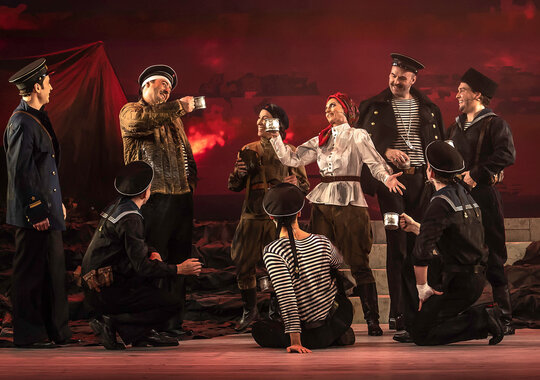 В основе этой динамичной и зрелищной постановки — героические времена и мирная жизнь города Севастополя. Живой оркестр, эффектная хореография, комедийные сцены и трогательная музыка эмоционально окрашивают непростые отношения героев, их историю любви и верности. Постановщику спектакля, известному режиссёру и хореографу, Егору Дружинину удалось широко раскрыть в этом музыкальном спектакле темы патриотизма, искренней любви и дружбы.