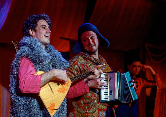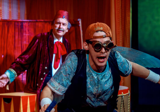 Волшебная и яркая история включает множество чудес и превращений. Специально для постановки артисты «Покровки» освоили цирковые трюки, создав уникальные клоунские номера. Здесь и трогательная женитьба царя Салтана, и рождение его сына, князя Гвидона, который из-за козней тёток попадает на необитаемый остров. А спасённая от коршуна Царевна-Лебедь помогает ему стать могущественным владыкой острова Буяна и воссоединиться с отцом. А ещё в спектакле есть смешная белка с орехами, весёлые богатыри и, конечно, три путешествия Гвидона к отцу в виде комара, шмеля и мухи.
