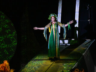 Снегурочка, героиня сказки, очень хотела научиться петь, но скоро поняла, что для того, чтобы научиться петь, нужно сначала научиться любить. Любовь — это дар, который ей дарует ее мама. Снегурочка понимает, что любовь важнее земного существования. Главный смысл спектакля «Снегурочка» проявляется в момент, когда девушка бросается к матери с просьбой научить ее любить. Жизнь без любви для нее бессмысленна, ее душа не может смириться с холодным сердцем. Поэтому девушка готова пожертвовать жизнью ради познания любви.
