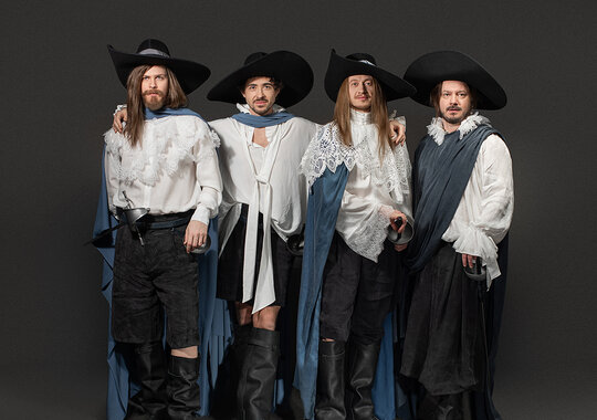 Евгений Марчелли: «Для меня «Мушкетёры» — это всегда история про дружбу и любовь, про романтическую лёгкость от жизни, от авантюры, от молодости. Хочется мажорного, эмоционально насыщенного действа, не побоюсь этого слова, феерии. Именно так мы хотим воплотить этот материал на сцене. Сегодня нашей главной задачей является, на мой взгляд, подарить зрителю три часа радости в театре».