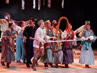 Тема искренности. Тема социального неравенства. Тема чести и порядочности. Бездна тем — в шутливой истории про более чем удачливых российских "Монтекки и Капулетти«.Вихревая атмосфера повести очень органично воспринимается в музыке, в пластике, вокале, танце. Так родился замысел изящного мюзикла в инсценировке, постановке и хореографии известного петербургского балетмейстера Сергея Грицая, автора одного из самых ярких наших спектаклей последних лет — «Холстомер». И вновь это взгляд на профессию Артиста — через призму классического сюжета! Ибо именно актёрством, талантом перевоплощения пронизана чудесная повесть Пушкина, полная юмора, лирики, искренности, теплоты, неизбежных и сладостных сердечных мук.