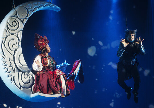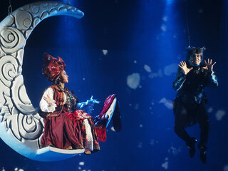 Когда из печных труб струится дымок, в окошках горит свет, а на улице завывает и кружит меж сугробов метель, невольно забываешь о том, что ты находишься в зрительном зале, а не в деревушке близ Диканьки. Будто оказался в рождественской сказке, где кузнец Вакула ради своенравной красавицы Оксаны соглашается на сделку с чертом, а разбитная и хитрая Солоха, сидя на месяце, собирает в рукав звезды с ночного зимнего неба.