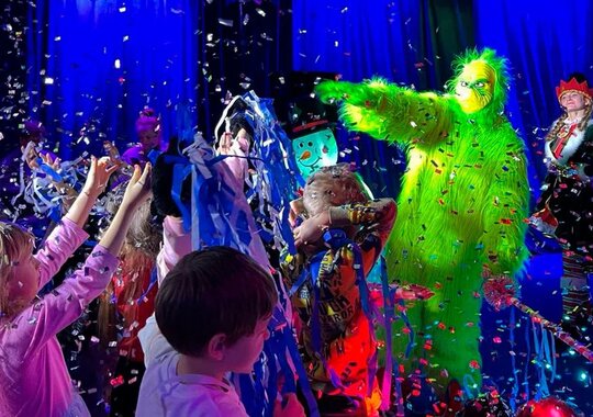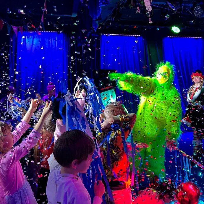 На шоу вас ждет: Встреча с Дедом Морозом, Гринчем, Ктотошками и весёлыми снеговиками! Новогодний хоровод, шоу мыльных пузырей и поролоновое шоу, шалости и проказы вместе с Гринчем, интерактивы с надувными шарами и звездами, танцевальные интерактивы и викторины, очень веселый и познавательный сюжет!