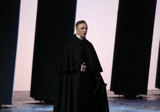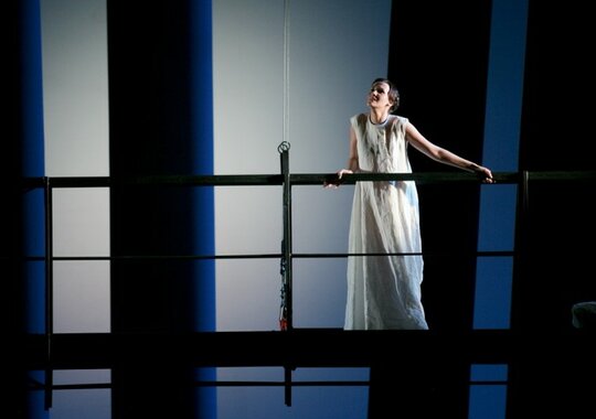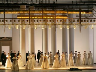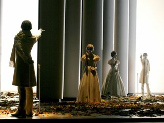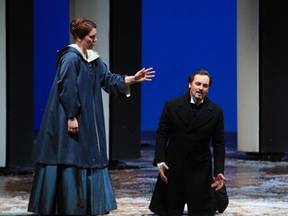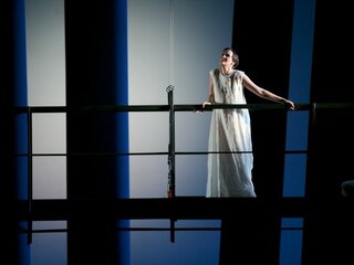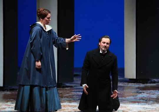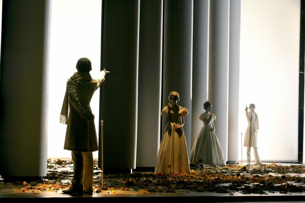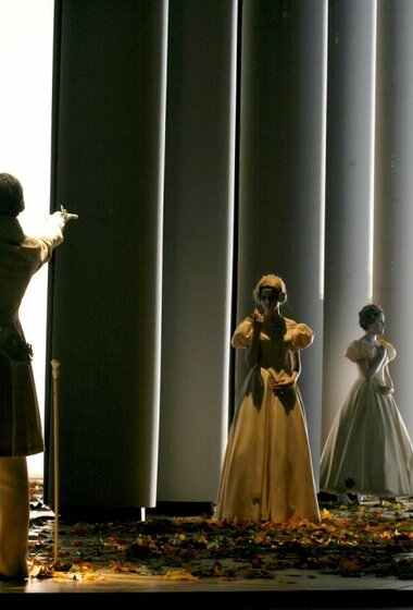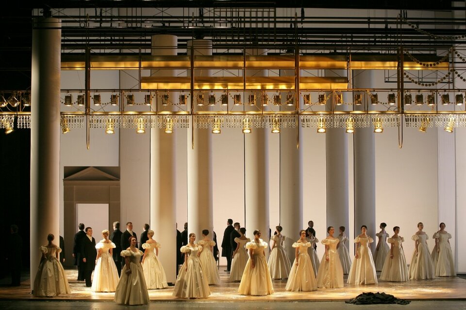Новая постановка «Евгения Онегина» появилась в репертуаре Музыкального театра им. Станиславского и Немировича-Данченко в первый же сезон после окончания реконструкции. Ее создатели отнеслись к легендарному спектаклю Станиславского с максимальным уважением, но отнюдь не стали копировать его. Предельно подробной осталась психологическая разработка характеров, и даже колонны сохранились в качестве основного элемента декорации. Другим стал только воздух, которым дышат главные герои. Это уже «Онегин» XXI века, современный и созвучный сегодняшнему зрителю.