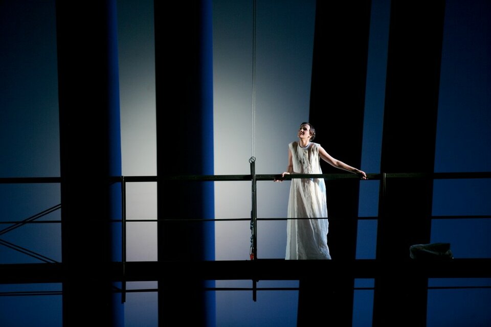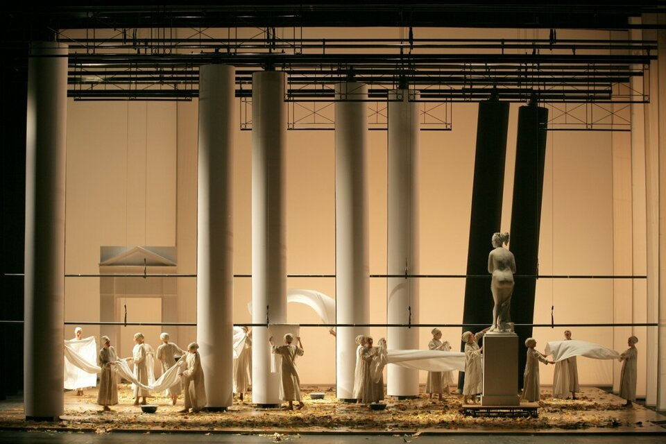 Новая постановка «Евгения Онегина» появилась в репертуаре Музыкального театра им. Станиславского и Немировича-Данченко в первый же сезон после окончания реконструкции. Ее создатели отнеслись к легендарному спектаклю Станиславского с максимальным уважением, но отнюдь не стали копировать его. Предельно подробной осталась психологическая разработка характеров, и даже колонны сохранились в качестве основного элемента декорации. Другим стал только воздух, которым дышат главные герои. Это уже «Онегин» XXI века, современный и созвучный сегодняшнему зрителю.