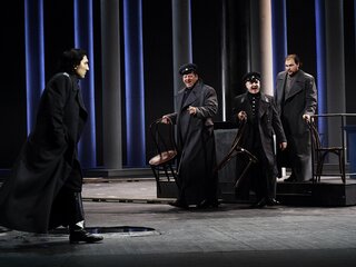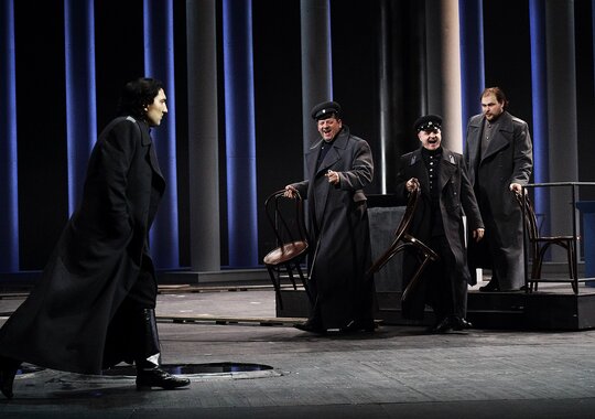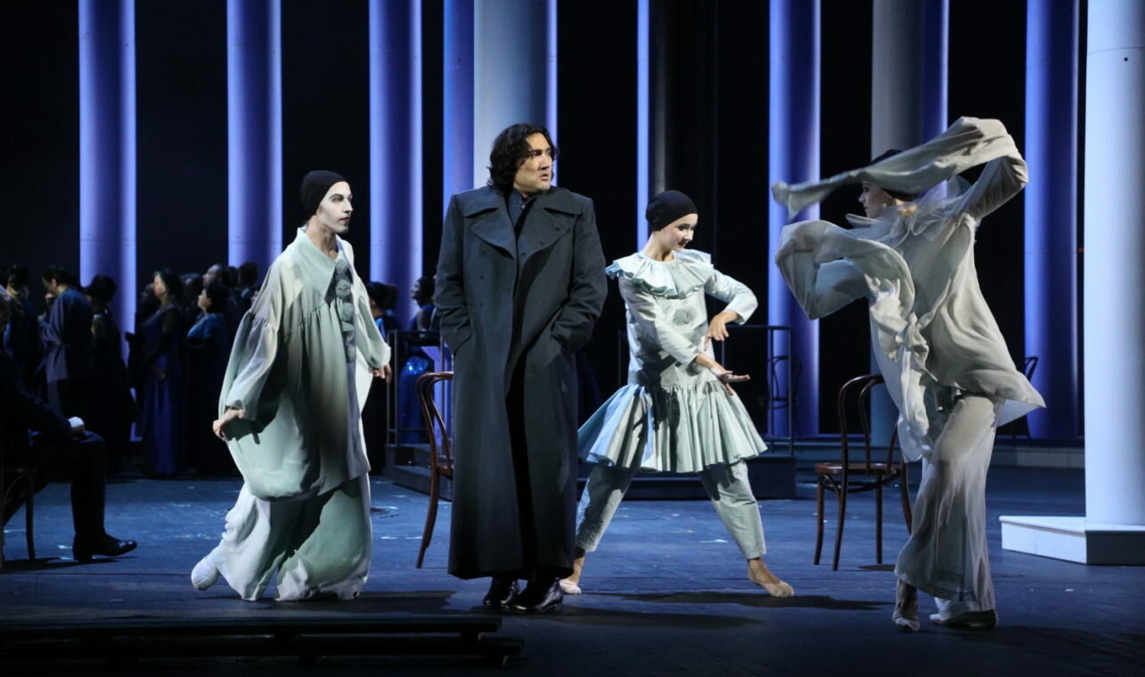 Петербург по праву называют одним из главных героев оперы П. И. Чайковского «Пиковая дама». Торжественная и трагическая красота парадных видов Северной столицы определяет эмоциональный строй постановки Александра Тителя. Ключевым образом сценографии Сергея Бархина становится величественная колоннада, несоизмеримо огромная по сравнению с человеческими фигурами.