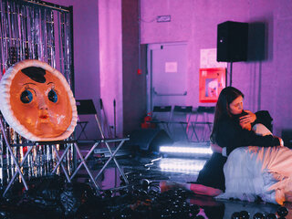 Мы не основывались на тексте с жестким нарративным сюжетом, а всей командой вслушивались и всматривались в этот мир, выращивая его из импровизаций, ощущений и нашего общего опыта. Для этого нам пришлось отказаться от множества привычных правил и способов работы (что неизбежно, если например художница перемещается между несколькими странами, а кураторка сидит в тюрьме...). Потому попытка и возможность услышать, почувствовать другого, с его болью и ограничениями, стала и главным содержанием этой работы, и принципом его создания.