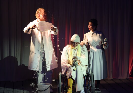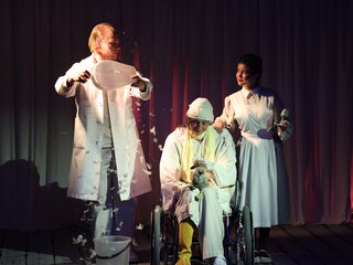 Спектакль-гротеск. Клоунада и трагифарс. Зритель окажется вне времени и географии.