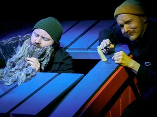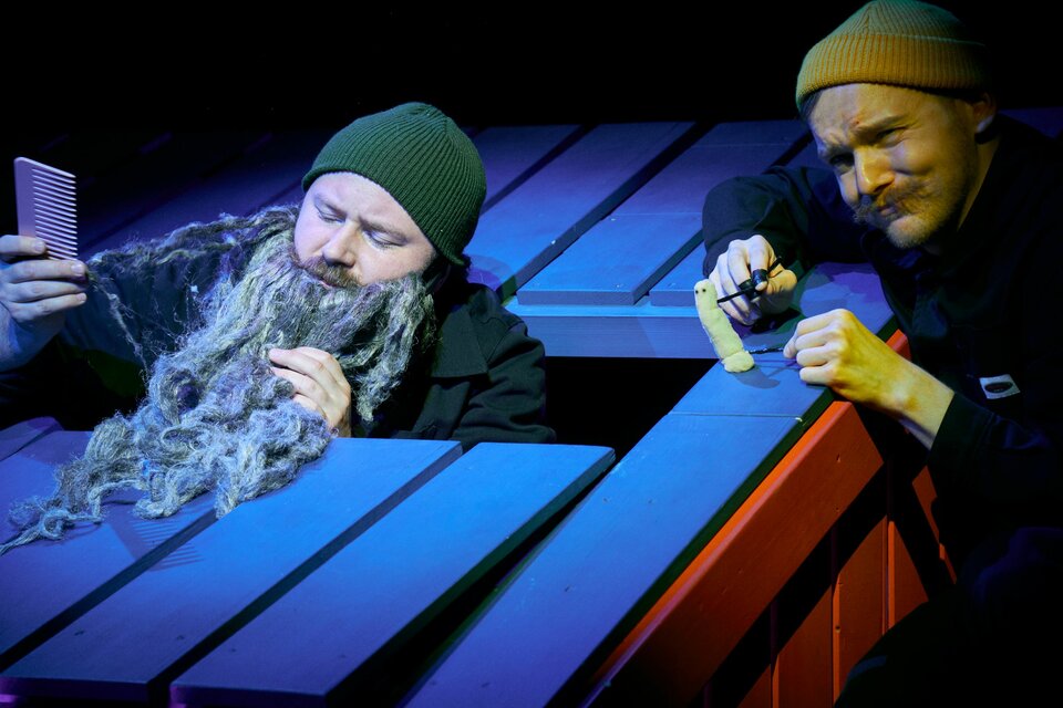 Минималистичные, но очень функциональные декорации, острый сюжет, жанр сторителлинга и современный юмор, понятный подростку.