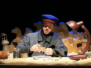 Пронзительную историю романа рассказывают 4 артиста и 9 кукол. Их маленький игрушечный мирок пытается охватить всю безграничность жизни и Вселенной: от верблюда, бредущего вдоль железнодорожного полотна, до запуска ракет к иным галактикам.