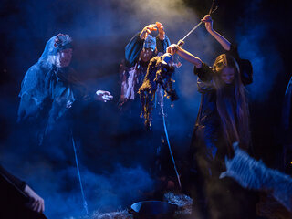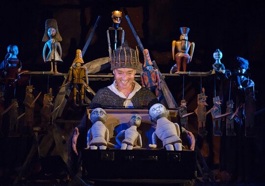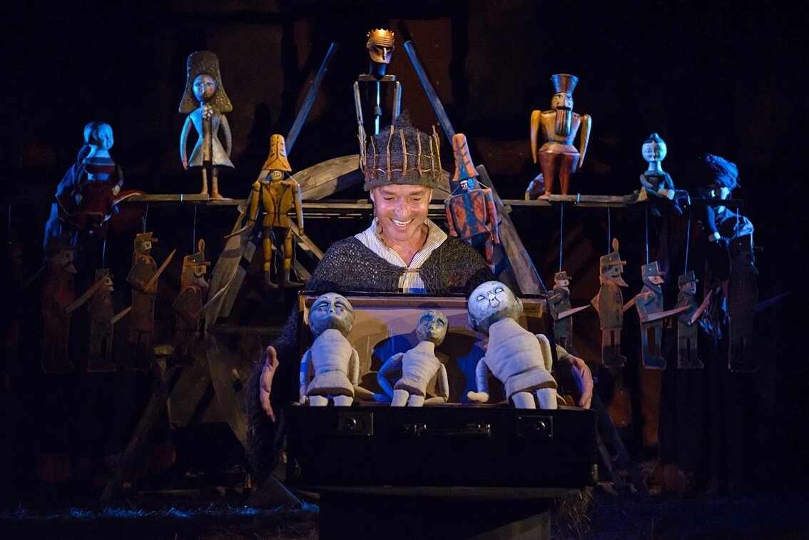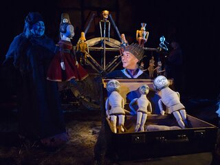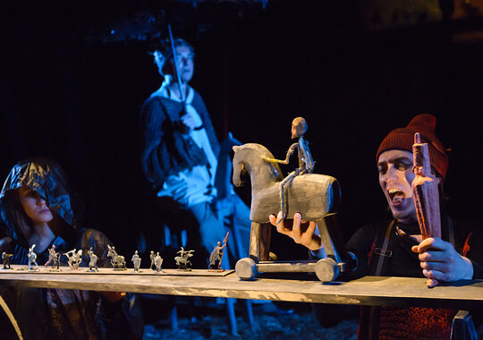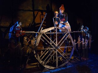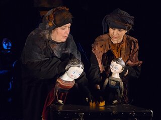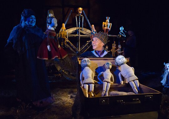 В спектакле задействована драматическая актерская игра в сочетании с игрой кукол.