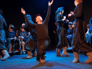 Актеры точно воссоздают плеск воды, шелест листьев, дуновение ветерка, кормят зрителей горячей ароматной картошечкой с укропом и пирожками. За необычностью формы не теряется обаяние и колорит гениальной прозы Гоголя.