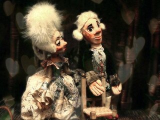 Старинные чемоданы, корзины с розами, высокие пудренные парики, кукольная посуда 17 века, антикварная кукольная библиотека сказок, средневековые игрушки с блошиных рынков Европы, кукольная собачка, кукольная косточка, но страсти настоящие: расчётливость, высокомерие и глупость укрощаются любовью.