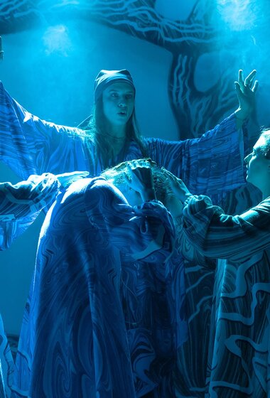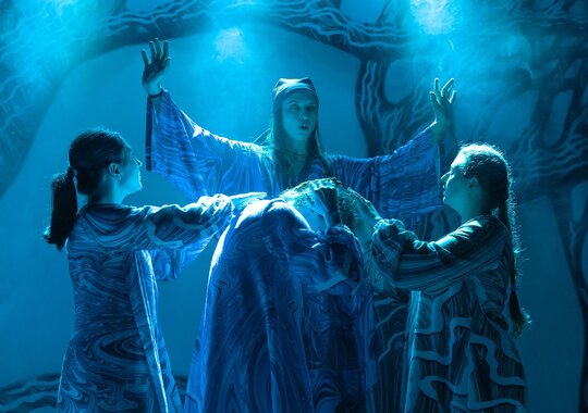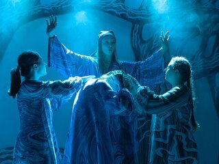 Спектакль, щедро наполненный фольклорными образами, языческими обрядами и славянскими этническими мелодиями, поставлен по мотивам всеми любимой, знакомой с детства сказки. Традиционные мотивы широко используются в костюмах и декорациях, а русские теневые куклы и живая актёрская игра перенесут вас в удивительный мир русских народных легенд и преданий.