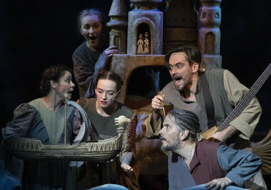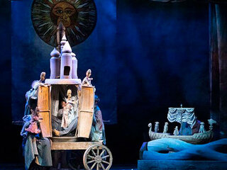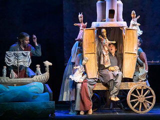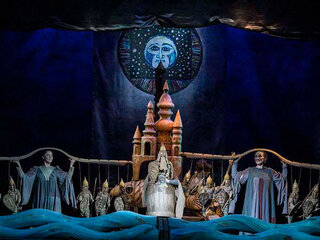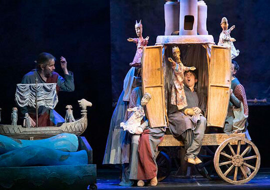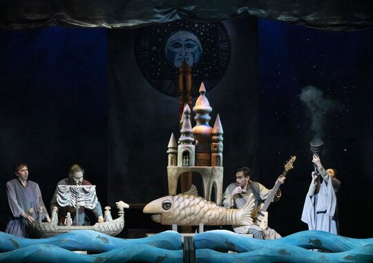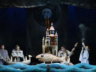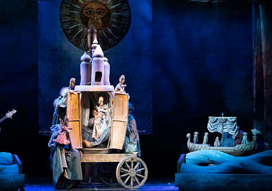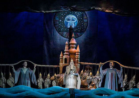 Такого Пушкина вы нигде больше не найдете! Потому что это Пушкин в стиле фолк-рок, музыкально-танцевальный авторский хит композитора Николая Шамшина. В спектакле бесподобные декорации (например, волны моря-океана вращаются, как в старинном театре) и невероятные деревянные куклы, вырезанные вручную: белка-щелкунчик, морские витязи с русалочьими хвостами и так далее. Каждая из них — произведение искусства.