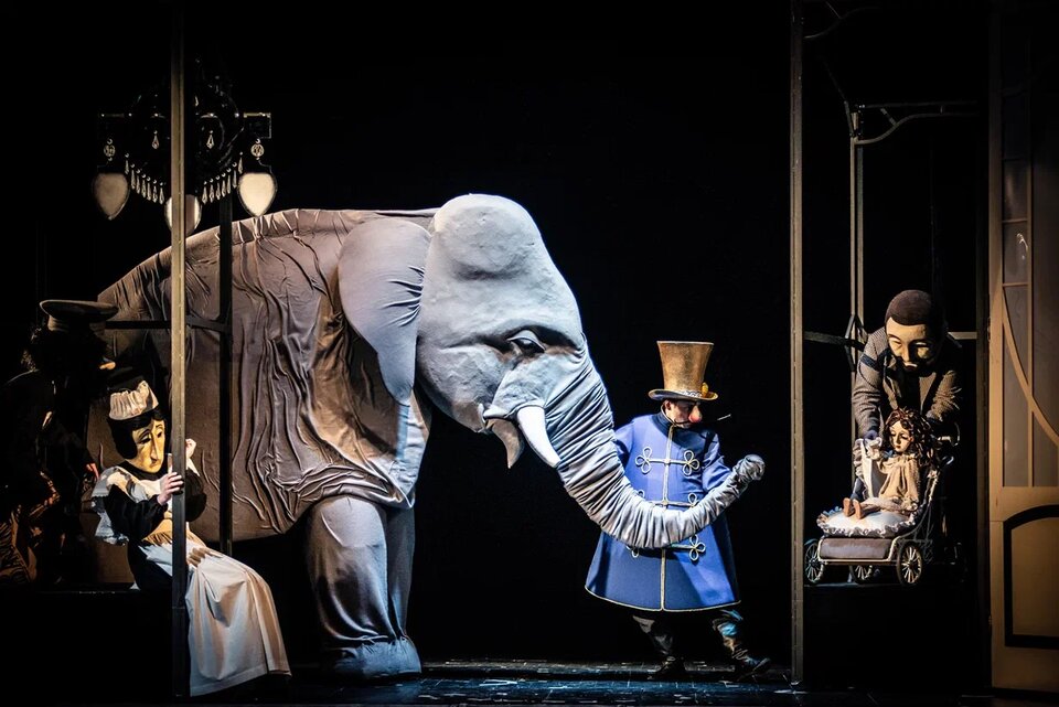 Спектакль «Слон» – признание в любви Санкт-Петербургу и красивейшей эпохе – началу ХХ века. Город – важное действующее лицо спектакля, его арки и набережные, грифоны и сфинксы, мосты и атланты – полноправные участники событий спектакля, наряду с куклами и актерами. Здесь возникает и тема старого петербургского цирка, в котором выступает всемирно известный фокусник Гудини, показывая свой знаменитый номер – исчезновение слона.