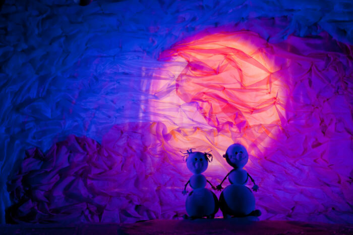 Зима, снег, мороз и вьюга — все это так любят веселые Снеговички. И им совсем не хочется, чтобы приходило весеннее Солнышко, от лучей которого они обязательно растают. Вот и отправились Снеговички искать это самое Солнышко, чтобы уговорить его никогда не приходить. Но в заснеженном лесу им встречаются маленькие замерзшие и голодные зверюшки, которые с таким нетерпением ждут прихода теплого весеннего Солнышка. И даже деревья плачут от холода. Что же делать добрым Снеговичкам? И они, конечно же, решают помочь всем и просить Солнышко прийти как можно скорее… Добрый и трогательный спектакль о дружбе и умении приносить радость тем, кто тебя окружает.