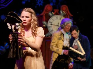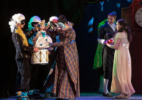 Эта удивительная история случилась накануне Рождества. В то время, когда непременно происходят чудеса, особенно если ваш крестный — волшебник. В сказку попадает все семейство доктора Штальбаума. А вместе с ним и зрители, очарованные мелодией волшебства, сиянием праздничных огней, волнующей тайной театра теней. А началось все с того, что Мари сумела добрым сердцем разгадать в деревянном Щелкунчике отважного героя.