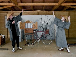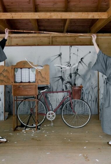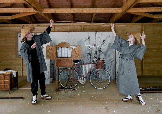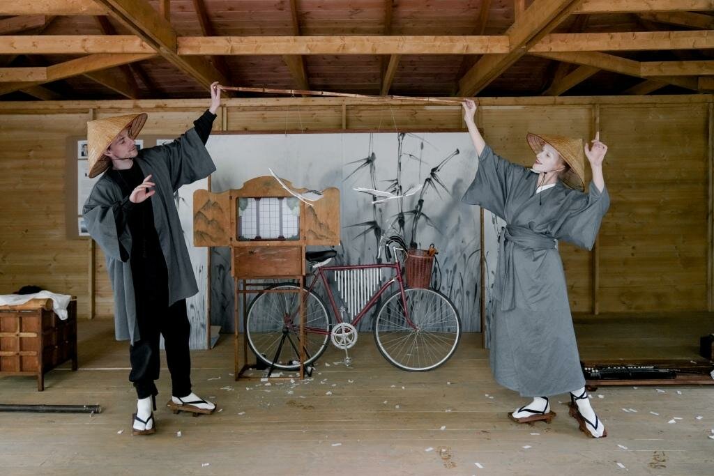 Спектакль «Журавль» соткан из мотивов японских народных сказок «Журавлиные перья» и «Остров вечной юности» в технике японского уличного театра камисибай.