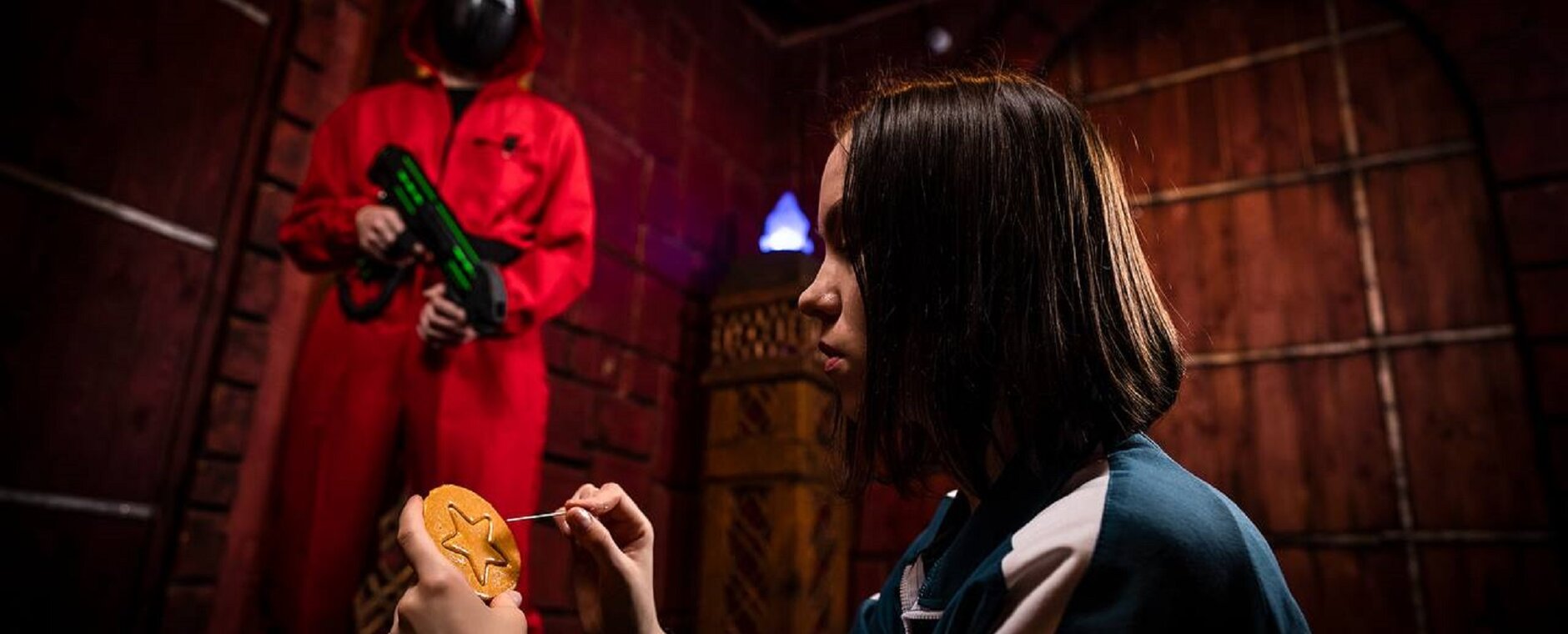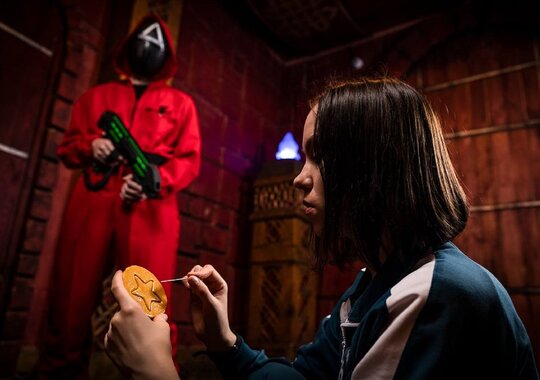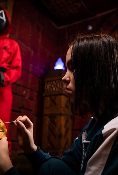 Все началось в момент, когда вы решились взять ту странную визитку. Всего три простых фигуры: треугольник, круг и квадрат. Никто не предупреждал вас о том, что эта неброская карточка — входной билет в жестокую игру, где жажда наживы сильнее страха смерти... Да, это «Смертельная игра»! Вас ждут 80 минут тематических заданий и полное погружение в атмосферу знаменитого сериала в режиме 18+. Игроки получат униформу с номерами, наденут шоковые браслеты (обратите внимание на ограничения квеста) и встретятся с молчаливыми охранниками в той самой красной форме. В нашей версии все игроки дойдут до финала, но приз получит только сильнейший. Да начнется Игра в кальмара! Внимание! У этого квеста есть строгие ограничения: — строго от 18 лет; — наличие кардиостимулятора; — болезни сердца; — беременность; — психические расстройства; — панические атаки. ⚠️ Если вы не знаете, сколько игроков будет в вашей команде в день игры, забронируйте сеанс на минимальное количество участников и доплатите разницу на месте. Обратите внимание: оплата за игроков, отсутствующих на игре, не возвращается. Возрастные ограничения : от 18 лет