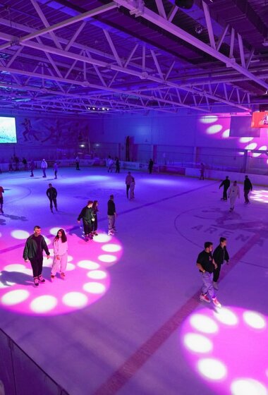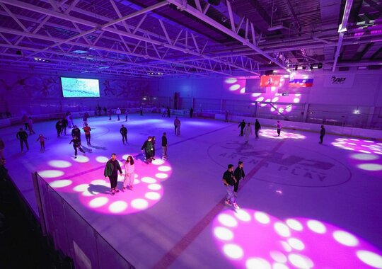 DJ, ведущие, современные треки, дискотека на льду, светомузыка и развлекательная программа (интерактивы, конкурсы, эстафеты).