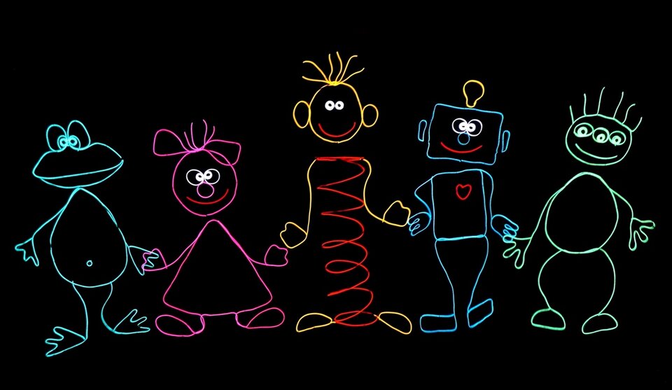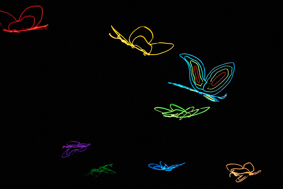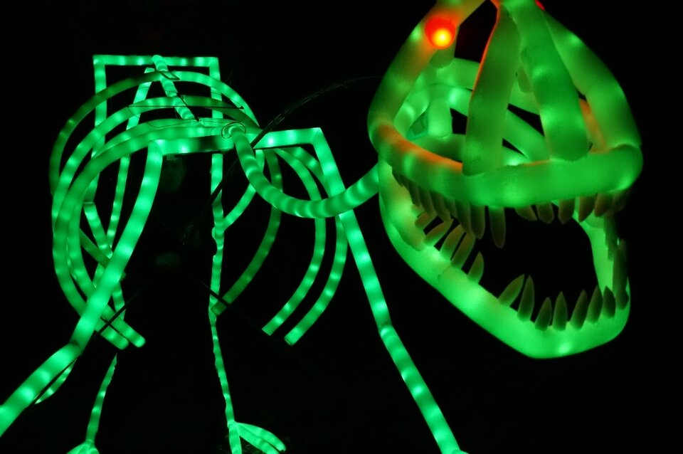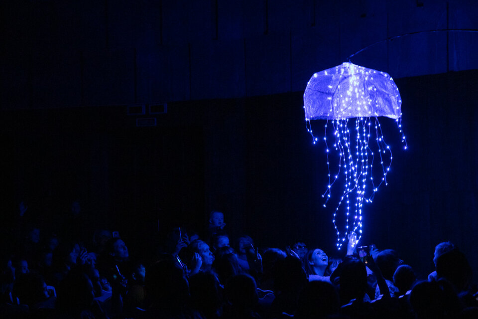 На сцене оживают персонажи: Скелетозавр, Паук-Инопланетянин, Бабочки, Жар-птица, Балерина и многие другие. Секрет выразительности кукол кроется в их уникальной конструкции. Это не просто театральные куклы с подсветкой: Николай Зыков использует светодиоды и электролюминесцентные провода, авторские технологии, не имеющие аналогов в мире. Дети будут пищать от радости, а взрослые — затаив дыхание, вспоминать своё детство.