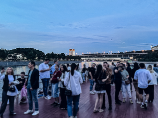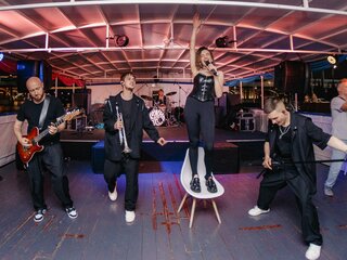 Сначала идёт стендап-концерт. Выступают два комика и ведущий мероприятия (с лучшим материалом). Потом — концерт с живой музыкой. Прозвучат известные хиты мировой сцены в необычных обработках. Можно будет послушать, потанцевать, попеть! Вы сможете насладиться не только двумя шоу за один билет, но и волшебными и необычными видами Москвы, сделать яркие фотографии!
