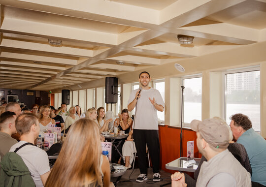StandUp Msk — это стендап-комьюнити комиков со всей России. У нас выступают участники всех популярных стендап-шоу на ТВ и YouTube. На вечер мы превращаем кафе, рестораны и бары по всей Москве в настоящие комедийные клубы. А теперь и на теплоходе!