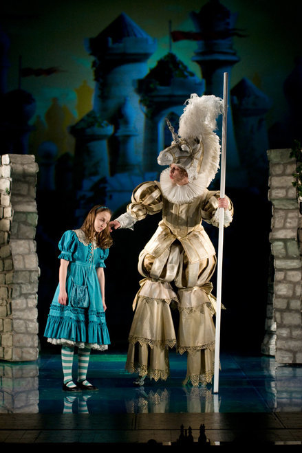 Очень часто инсценировщики, адаптирующие тексты Кэрролла для театра, объединяют Страну Чудес и Зазеркалье. Мы пошли по другому пути: остановились на Зазеркаль» — более сложной и строгой, шахматной истории, и постарались передать ее атмосферу. В сценической композиции Ивана Поповски можно встретить Белого Кролика, Черепаху Квази и Грифона из Страны чудес, однако эти персонажи постановки входят в мир Зазеркалья и подчиняются его законам.