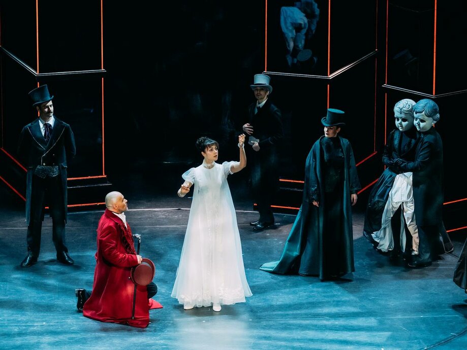 Грандиозный бал-спектакль с огромными масками, роскошными костюмами и масштабными декорациями переводит фокус внимания зрителя со слов на эмоции и поведение героев. Меняются сцены, места, события, но неизменными остаются люди — объекты лермонтовской сатиры. Понять глубже происходящее на сцене помогает музыка композитора Павла Акимкина: она переносит зрителя из атмосферы беспечности и счастья в темный мир человека, потерявшего собственный рай.
