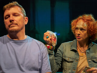 «Аркаим» — постановка, принципиально с нового ракурса отражающая столь сложную и до сих пор зачастую запретную тему — деменцию. Действие спектакля начинается в зале ожидания вокзала, где герои ждут поезда в мистический город Аркаим, предстающий в пьесе как образ закрытого внутреннего мира человека в деменции. Настоящее здесь переплетается с прошлым, а реальность уступает место воспоминаниям. Зрители станут свидетелями трогательных историй, наполненных страхами, радостями и документальными деталями жизней героев. В центре повествования — полковник танковых войск в отставке Константин (Константин Кожевников) и его внучка Дуся (Нелли Уварова). Константин живет в мире начинающейся деменции, где воедино смешались 1950-е с их танцами, 1970-е и настоящее. Его внучка Дуся, отказываясь принять страшный диагноз, пытается выстроить мир для двоих, в котором болезнь не будет иметь значения. Их история переплетается с историями других людей с деменцией и их родных. Каждая из них — история любви, которая ищет новые формы существования и смыслы в изменившихся и необратимых обстоятельствах. Показ пройдет на благотворительной основе: средства от продажи билетов пойдут на программы адресной и системной помощи людям с деменцией и их семьям.