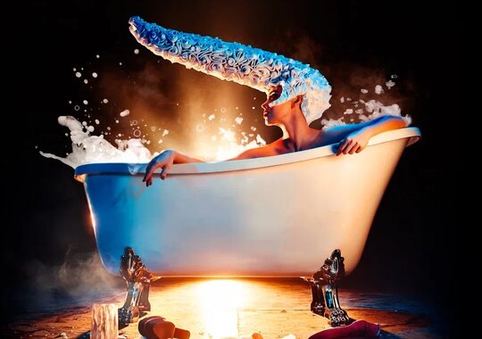 Ванная комната, словно музыкальная шкатулка, вращается трансформируется, скрывая в себе неожиданные трюки, секреты и блистательный юмор под зажигательное сопровождение группы The Hatters.