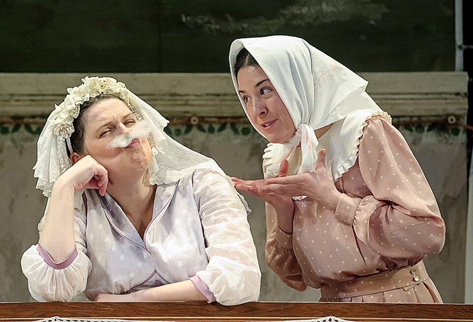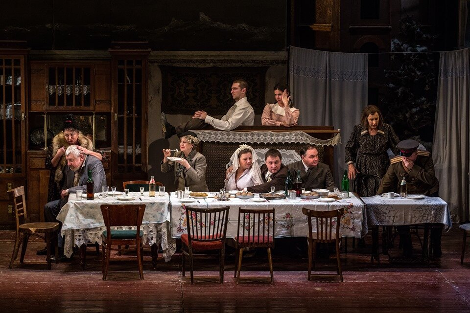 Шифоньер, швейная машинка Зингер, обеденный стол, кровати с железной спинкой, салфетки ришелье — в спектакле живет и дышит послевоенный советский быт, который сохранялся десятилетиями, хоть менялись радиолы и добавлялись холодильники. Буфет, центр этой бердичевской космогонии, незыблем все 30 лет: потому что буфет — это буфет. На сцене воссоздана и бердичевская водонапорная башня — но уже в театральном макете. Башня сгорала, была разрушена, перекрашена — у нее как и у семьи Капцан-Луцких биография на фоне эпохи.