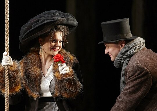 Героиня Лидия молода и амбициозна, ею восхищается вся московская элита: от гимназистов до представителей правительства. Она привыкла жить на широкую ногу и находится в поиске того единственного, кто «и в горе и в радости» обеспечил бы ее безбедное существование. Услышав о сказочном богатстве одного провинциального предпринимателя, красавица делает свой выбор, однако немного ошибается в расчетах… В спектакле Театра Маяковского нет дидактики и каких бы то ни было нравоучений – здесь пытаются показать на сцене живых людей и пробуют разобраться в их человеческой сущности.