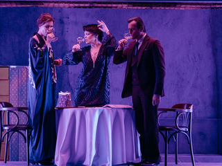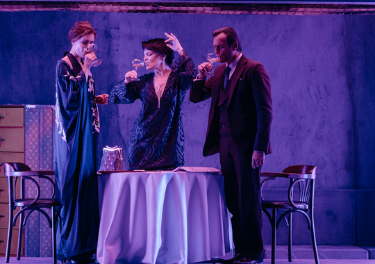 По пьесе Влада Васюхина. Ялта. Гостиница. В номере три человека — мировая знаменитость, танцовщица Айседора Дункан, ее приёмная дочь Ирма с мужем Ильей Шнейдером. Но незримо чувствуется присутствие четвертого, которого все ждут, о нем говорят, вспоминают, кто с любовью, а кто с любопытством или отвращением. Его видят в каждом мужчине за окном или в тенях, которые отбрасывает бокал с вином. Есенин. Он где-то есть, но его нет там, где он нужен — возле своей жены Айседоры в Ялте. Величайшая танцовщица поколения, женщина, пережившая смерть своих детей, нырнула со свойственной себе страстью в отношения с молодым русским поэтом, а вынырнуть не смогла. Окружающие не понимали их отношений, те, кто любил Айседору, как ее приемная дочь, во всем обвиняли Есенина, круг почитателей поэта и его друзья, считали, что именно она виновата в том, что он пристрастился к алкоголю. Режиссер Дмитрий Сердюк: «Основной идеей, камертоном спектакля я считаю такую фразу: «Самое страшное находиться в состоянии иллюзии и думать, что это состояние приведет тебя к желаемому и заветному». Мы все попадаем в этот поезд под названием Иллюзия, рассаживаемся по вагонам согласно купленным местам и этот поезд несется с огромной скоростью. В конечном счете мы прибываем на конечную станцию под названием реальность и сталкиваемся с ней лицом к лицу. В нашем случае для меня все персонажи спектакля и пьесы находятся в той или иной степени иллюзии, в иллюзии отношения к жизни».
