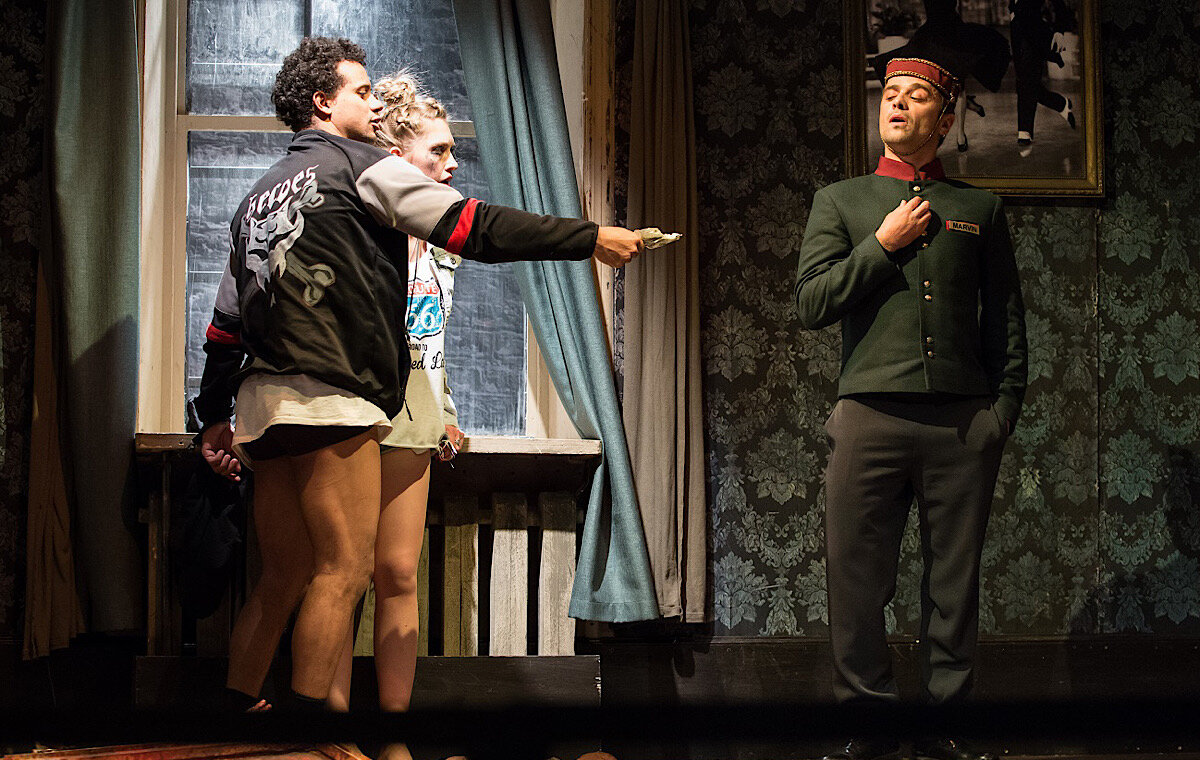 Но комическая интрига усложняется еще и тем, что помощниками и противниками Безрукого в его бесконечном американском путешествии на короткий отрезок времени становятся афроамериканец, приторговывающий марихуаной, его белая подружка — безбашенная блондинка — и шизофренический портье.